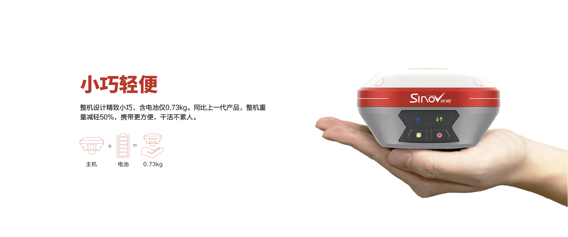 內(nèi)置6800mAh鋰電池,支持移動站15小時(shí)續(xù)航 |